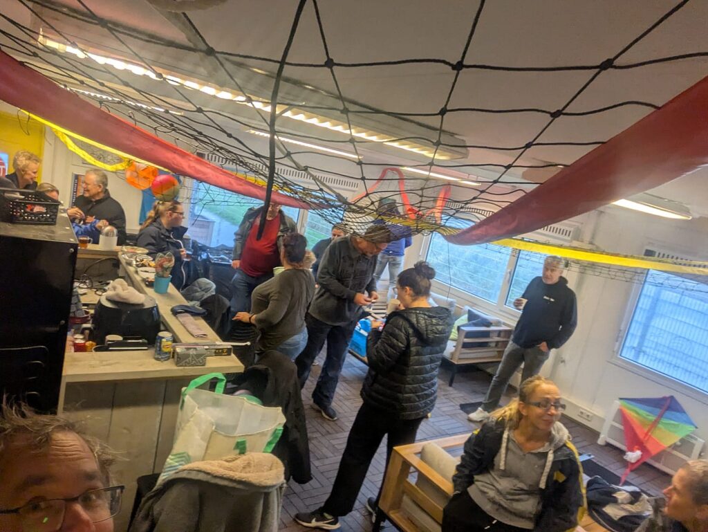 De gele container is opgeruimd, alle ballen zijn opgeslagen in de FBK hal, overbodige kussens ook en de binnen kussens zijn ingepakt in de container gelegd.