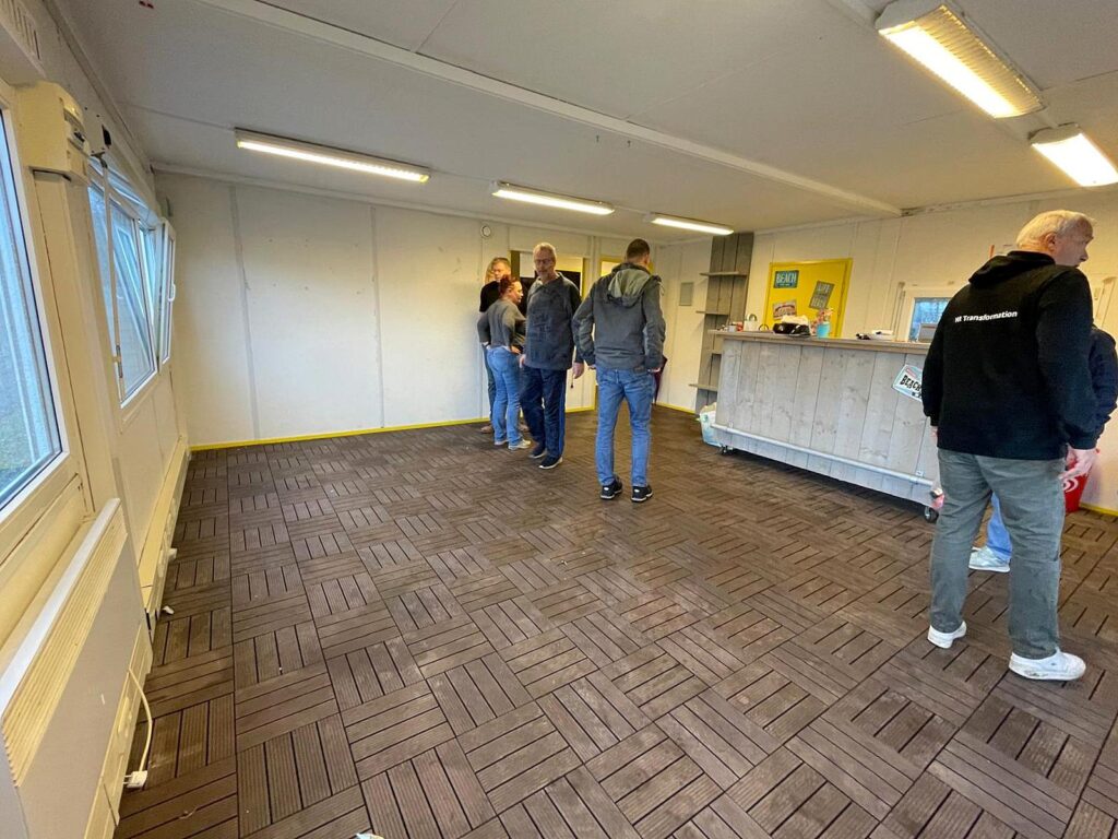 De binnenboel is opgeruimd, alle kussens in zakken, koelkasten leeggemaakt en alle meubilair in de kleedkamers geplaatst om ruimte te maken voor een make-over van de barruimte, welke op de planning staat.