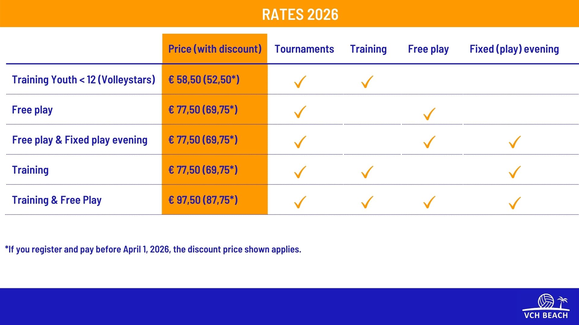 - Vrij spelen gedurende het hele beachseizoen, maart tot oktober